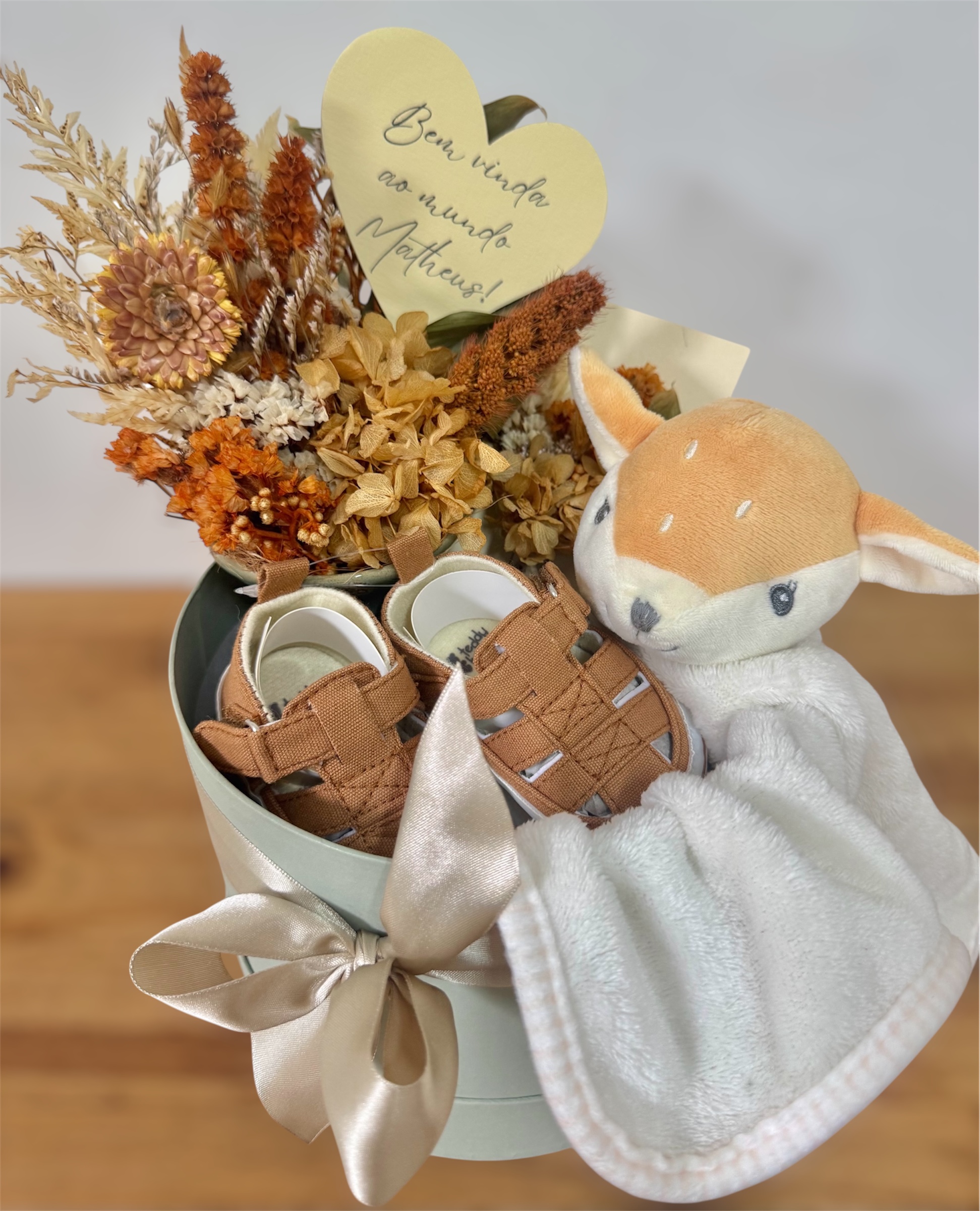* Os itens do pedido a serem personalizados , cartão de mensagem e TAG de coração com o nome da criança, ao realizar a compra aqui pelo site, entramos e contato e solicitamos que nos envie os detalhes para efetuarmos a personalização.
