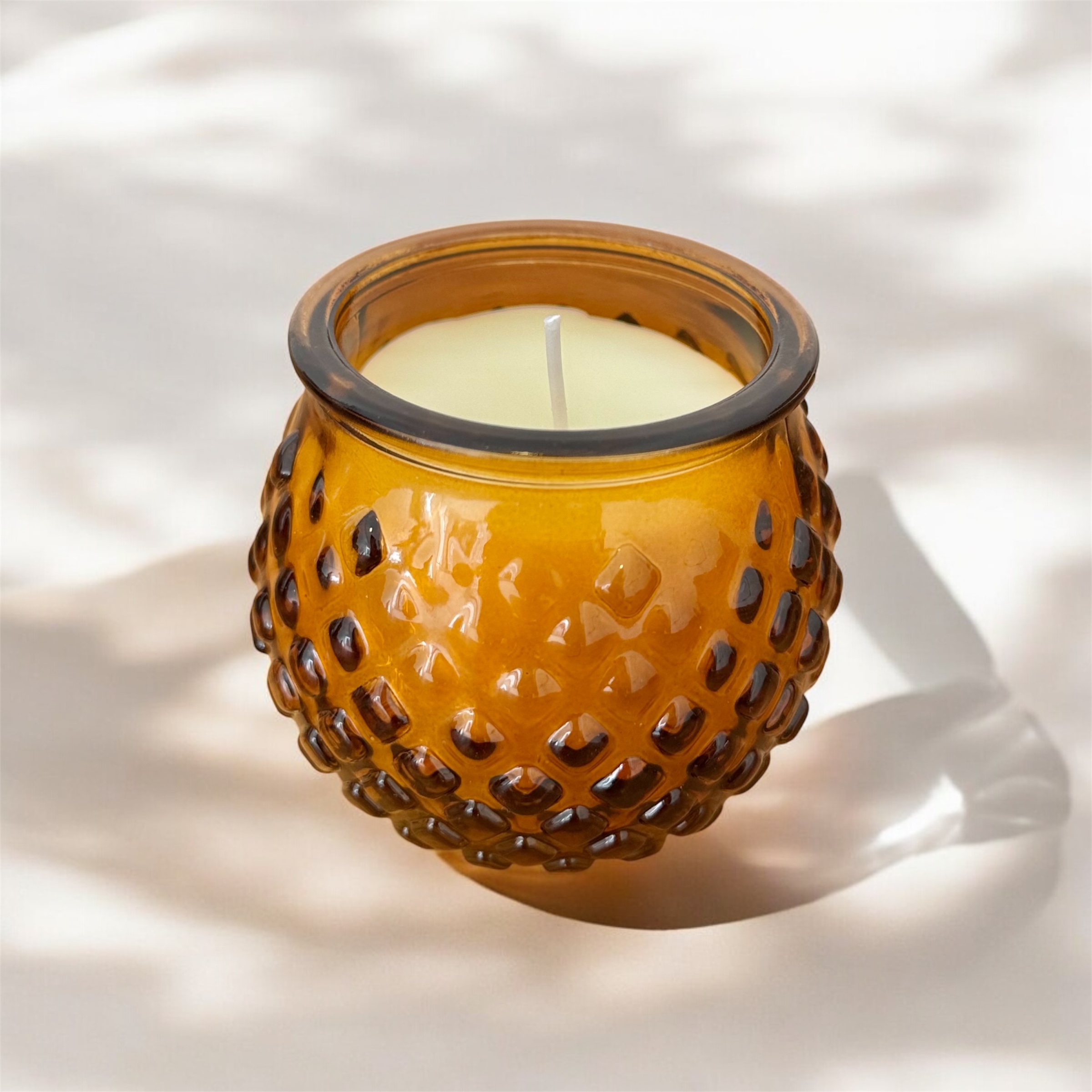 . Vela aromática com fragrência exclusiva Maison Decoreé em base de vidro âmbar 6x6cm
